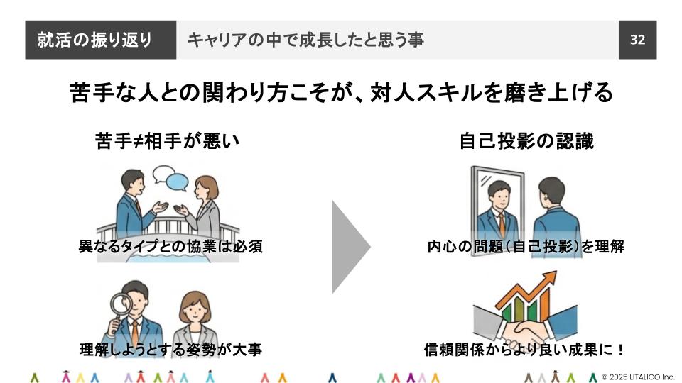 2つ目は対人スキルについてです。社会に出れば、どうしても「苦手なタイプ」の人と協働しなければならない場面があります。