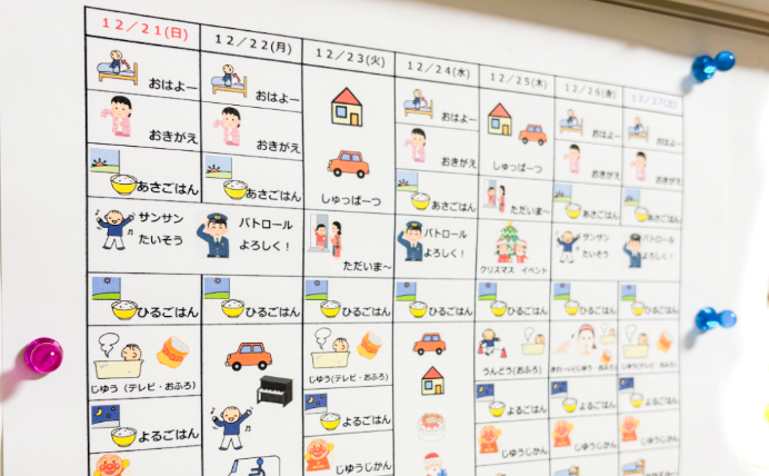 先の見通しがあると行動しやすいYさんのために用意された予定表