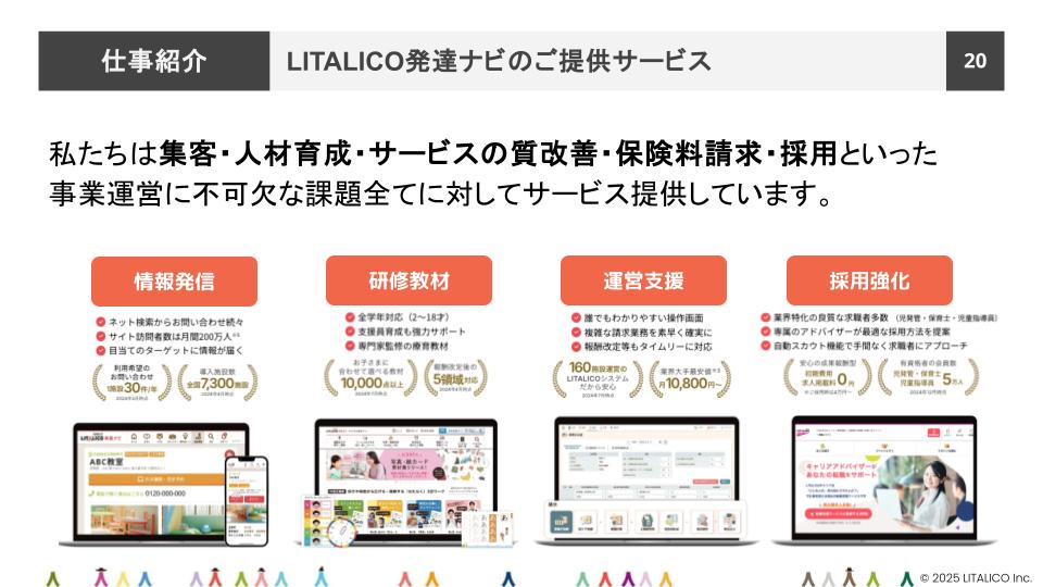 「LITALICOには特定の領域だけでなく、もっと広い『社会課題の解決』そのものに熱狂しているメンバーがたくさんいます。社会課題という大きくて複雑なテーマに対して、ビジネスという手法で挑む。そこには難しさもありますが、それ以上に、仲間と議論しながら解を見つけていく楽しさがあります。もし、今の社会に何かしらの違和感や『こうだったらいいのに』という想いがあるなら、それを実現するフィールドとして、ぜひLITALICOを覗きに来てください!皆さんとどこかでお会いできるのを楽しみにしています!」
