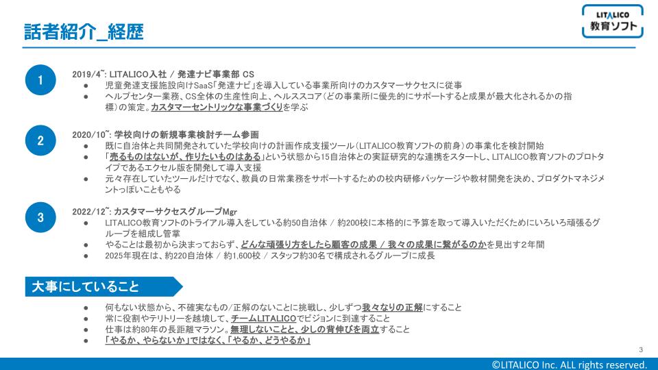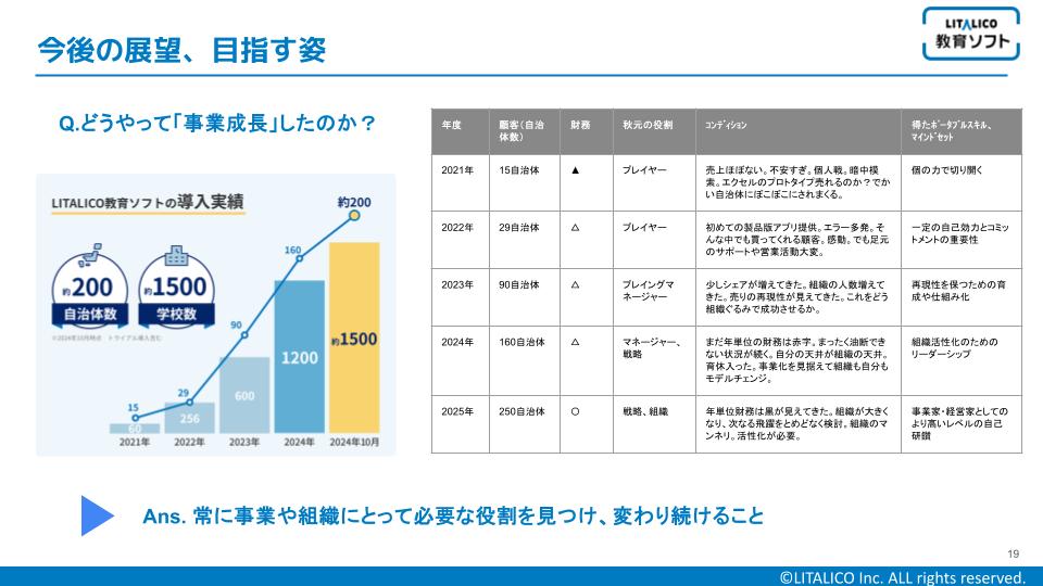 試行錯誤の末、秋元が率いる「LITALICO教育ソフト」は、2025年現在、約220自治体 / 約1,600校に導入され、約30名のスタッフが所属する組織へと大きく成長しました。